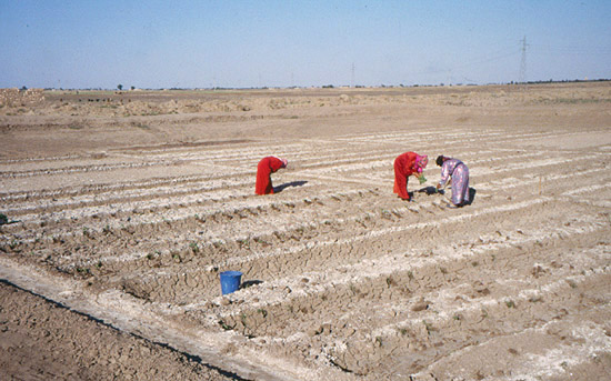 Anbau von Feldfrüchten im Versuchsteich
